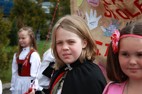 Both Emma and Daniel have been going to track and field training every Monday evening for two years now. Daniel is a natural. He's got the body. You know the one. That lean, sculpted, athletic body built to skip and prance lightly through any physical activity you point it at. That's his genetics, the lucky little bastard. Emma and I just have to deal with that. Emma goes primarily to ensure that she gets in one good workout, once a week. No one asks her to compete, because the thought of it makes her sick to her stomach. But she's been saying for the past 4 or 5 months now that she can tell she's getting better. Her coaches are complimenting her on her running style. She feels lighter. She can keep up at a sprint with some of the faster boys in the class now. She's obviously pretty pleased with herself about all this. So when the prospect of this løpskarusell* came up, she was open to it, as long as I would run it with her. I happily agreed.