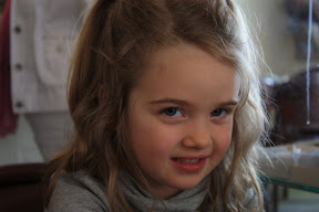 Dinner Friday night. . Only two of the girls' hair is yet braided. . If dinner had been but an hour later, the rest would have been similarly coiffed. |
